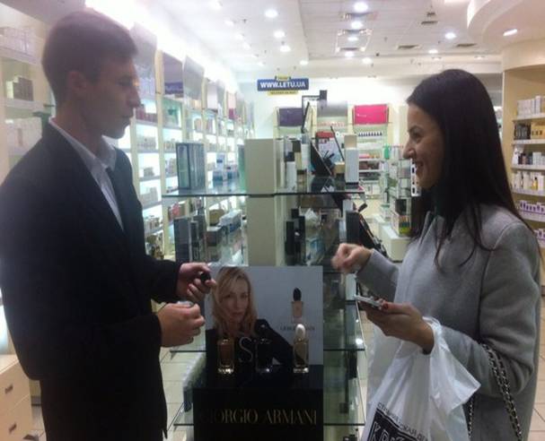 Команда SMART Marketing реализовывает спреинг ароматов Giorgio Armani. В торговых точках спреингисты знакомят посетителей с легендарными ароматами Giorgio Armani «Si» и «Acqua Di Gio», консультируют и раздают блоттеры с ароматы.