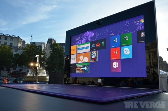 Корпорация Microsoft установила в Лондоне гигантский экран, стилизованный под планшет Surface, работающий на Windows 8. Об этом сообщает The Verge.